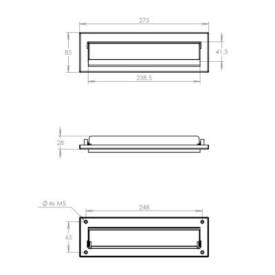 Barva schránky: Nerez; Hloubka schránky: 100; Jmenovka: Ne; Kamera: Ne; Komunikátor: Ne; Materiál: ocel nerezová; Montáž: sendvičová; Povrchová úprava: mat / brus K240; Rozměr čelní desky: 275 x 85; Šířka schránky: 270; Venkovní použití: Ano; Vhoz zásilek: vpředu; Výběr zásilek: vzadu; Výrobce: DOLS; Výška schránky: 380; Zvonkové tlačítko: Ne;