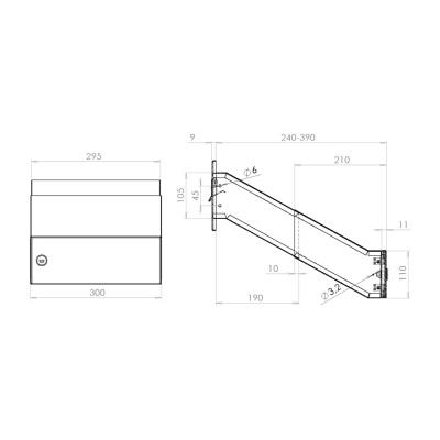 Hloubka schránky: 240 - 390; Jmenovka: Ne; Kamera: Ne; Komunikátor: Ne; Materiál: ocel; Montáž: zabudování; Povrchová úprava: barveno; pozinkováno; Rozměr čelní desky: 350 x 160; Šířka schránky: 300; Venkovní použití: Ano; Vhoz zásilek: vpředu; Výběr zásilek: vzadu; Výrobce: DOLS; Výška schránky: 110; Zvonkové tlačítko: Ne; Barva schránky: Antracit RAL 7016; Černá RAL 9005;