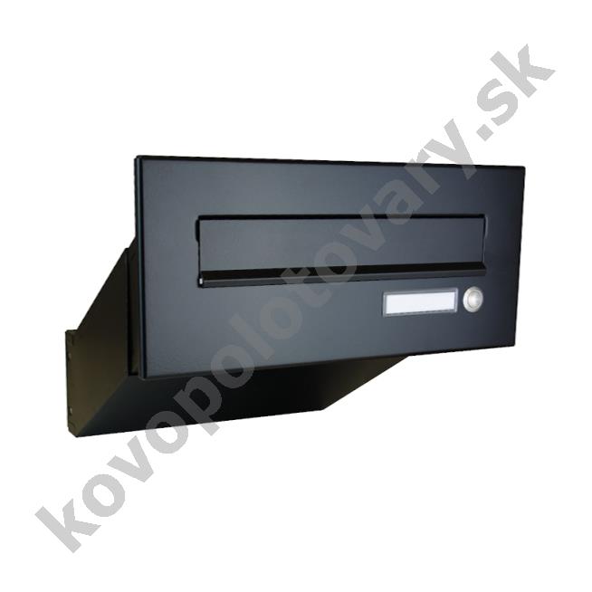 Hloubka schránky: 240 - 390; Jmenovka: Ano; Kamera: Ne; Komunikátor: Ne; Materiál: ocel; Montáž: zabudování; Povrchová úprava: barveno; pozinkováno; Rozměr čelní desky: 350 x 160; Šířka schránky: 300; Venkovní použití: Ano; Vhoz zásilek: vpředu; Výběr zásilek: vzadu; Výrobce: DOLS; Výška schránky: 110; Zvonkové tlačítko: Ano; Barva schránky: Antracit RAL 7016; Černá RAL 9005;