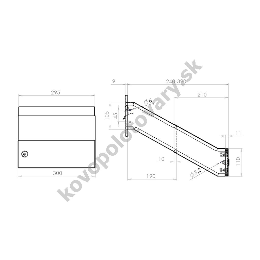 • telo schránky: 300 x 110 x 240 - 390 mm