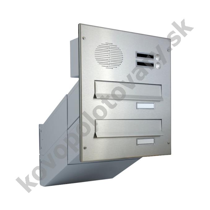 Barva schránky: Nerez; Hloubka schránky: 240 - 390; Jmenovka: Ano; Kamera: Ano; Komunikátor: Ano; Materiál: ocel; ocel nerezová; Montáž: zabudování; Povrchová úprava: barveno; mat / brus K240; pozinkováno; Rozměr čelní desky: 350 x 270; Šířka schránky: 300; Venkovní použití: Ano; Vhoz zásilek: vpředu; Výběr zásilek: vzadu; Výrobce: DOLS; Výška schránky: 220; Zvonkové tlačítko: Ano;