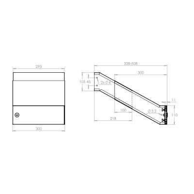 Barva: černá; Hloubka schránky: 330 - 500; Materiál: ocel; Montáž: zabudování; Povrchová úprava: barveno; pozinkováno; Šířka schránky: 300; Venkovní použití: Ano; Vhoz zásilek: vpředu; Výběr zásilek: vzadu; Výrobce: DOLS; Výška schránky: 110;