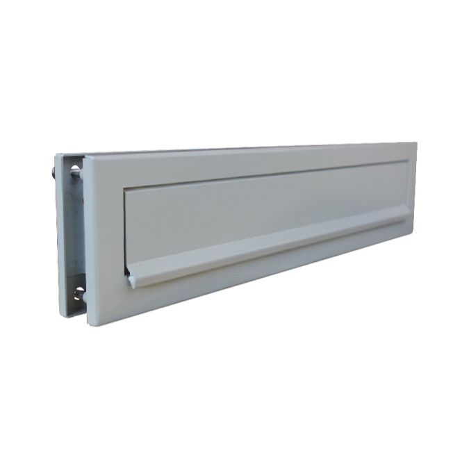 Lakovaný dverný vhod pre sendvičovú montáž na výplň dverí. Nahrádza poštovú schránku. Vhodný pre montáž na vchodové dvere rodinných domov a firiem alebo na dvere kancelárií.
