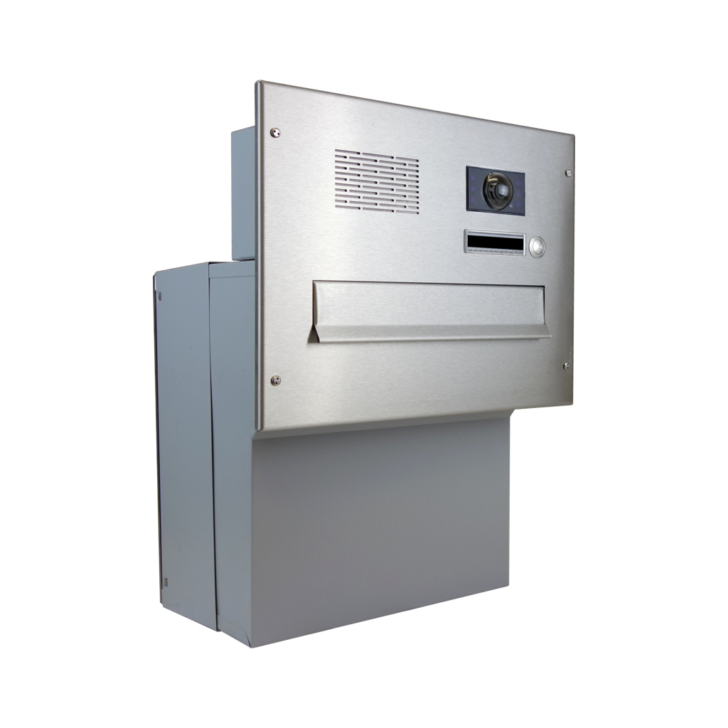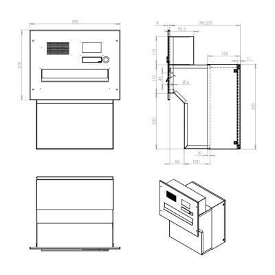 Barva schránky: Nerez; Hloubka schránky: 190 - 270; Jmenovka: Ano; Kamera: Ne; Komunikátor: Ano; Materiál: ocel; ocel nerezová; Montáž: zabudování; Povrchová úprava: barveno; mat / brus K240; pozinkováno; Rozměr čelní desky: 350 x 270; Šířka schránky: 300; Venkovní použití: Ano; Vhoz zásilek: vpředu; Výběr zásilek: vzadu; Výrobce: DOLS; Výška schránky: 440; Zvonkové tlačítko: Ano;