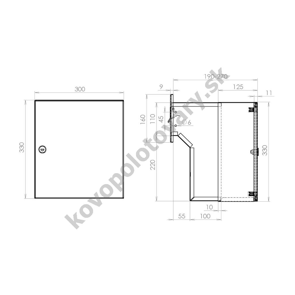Barva schránky: Nerez; Hloubka schránky: 190 - 270; Jmenovka: Ne; Kamera: Ne; Komunikátor: Ne; Materiál: ocel; ocel nerezová; Montáž: zabudování; Povrchová úprava: barveno; mat / brus K240; pozinkováno; Rozměr čelní desky: 350 x 160; Šířka schránky: 300; Venkovní použití: Ano; Vhoz zásilek: vpředu; Výběr zásilek: vzadu; Výrobce: DOLS; Výška schránky: 330; Zvonkové tlačítko: Ne;