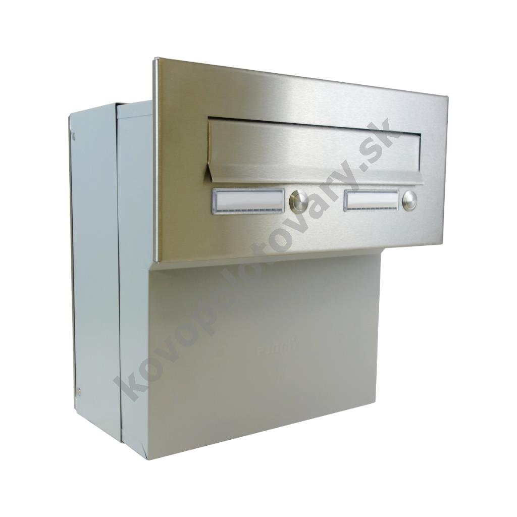 Barva schránky: Nerez; Hloubka schránky: 270 - 405; Jmenovka: Ano; Kamera: Ne; Komunikátor: Ne; Materiál: ocel; ocel nerezová; Montáž: zabudování; Povrchová úprava: barveno; mat / brus K240; pozinkováno; Rozměr čelní desky: 350 x 160; Šířka schránky: 300; Venkovní použití: Ano; Vhoz zásilek: vpředu; Výběr zásilek: vzadu; Výrobce: DOLS; Výška schránky: 330; Zvonkové tlačítko: Ano;