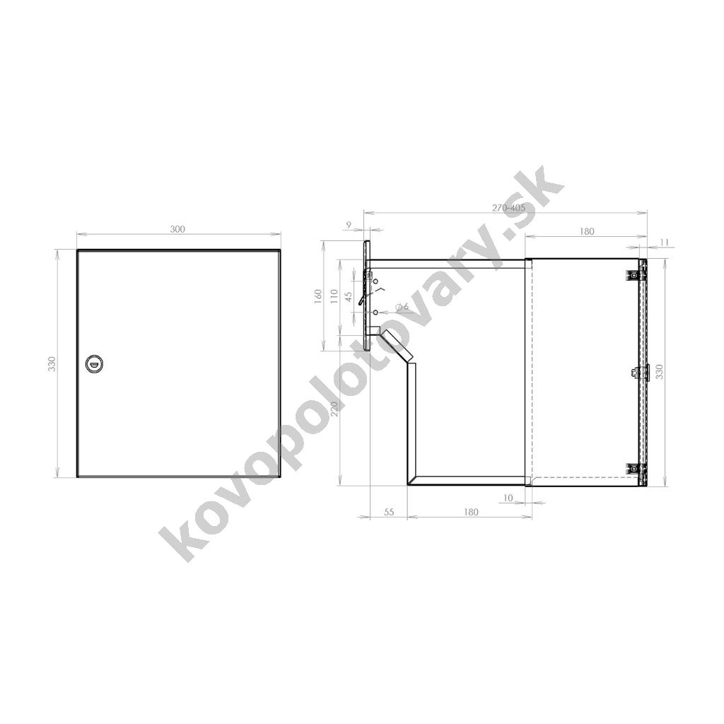 Barva schránky: Nerez; Hloubka schránky: 270 - 405; Jmenovka: Ne; Kamera: Ne; Komunikátor: Ne; Materiál: ocel; ocel nerezová; Montáž: zabudování; Povrchová úprava: barveno; mat / brus K240; pozinkováno; Rozměr čelní desky: 350 x 160; Šířka schránky: 300; Venkovní použití: Ano; Vhoz zásilek: vpředu; Výběr zásilek: vzadu; Výrobce: DOLS; Výška schránky: 330; Zvonkové tlačítko: Ne;