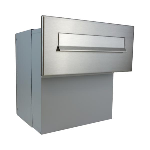 Nerezová uzamykateľná poštová schránka na zamurovanie, s nastaviteľnou hĺbkou. Možno dokúpiť nerezový L profil na orámovanie zadných dvierok a začistenie stavebného otvoru (k nájdeniu v sekcii príslušenstvo).