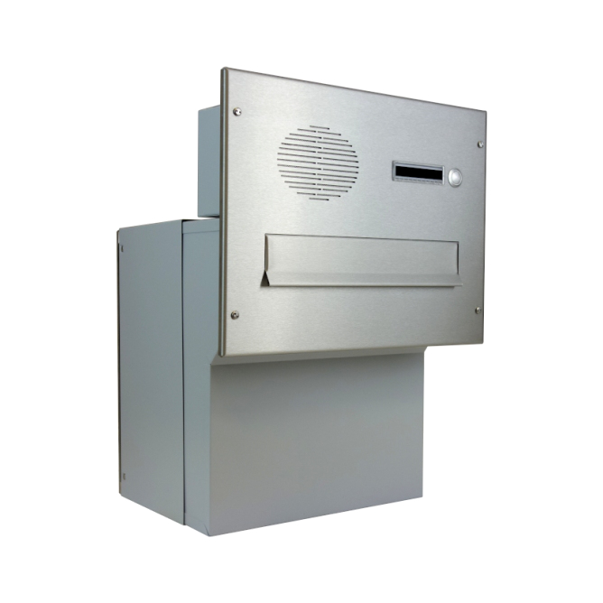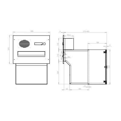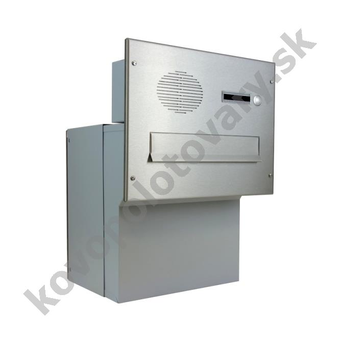 Barva schránky: Nerez; Hloubka schránky: 270 - 405; Jmenovka: Ano; Kamera: Ne; Komunikátor: Ano; Materiál: ocel; ocel nerezová; Montáž: zabudování; Povrchová úprava: barveno; mat / brus K240; pozinkováno; Rozměr čelní desky: 350 x 270; Šířka schránky: 300; Venkovní použití: Ano; Vhoz zásilek: vpředu; Výběr zásilek: vzadu; Výrobce: DOLS; Výška schránky: 440; Zvonkové tlačítko: Ano;