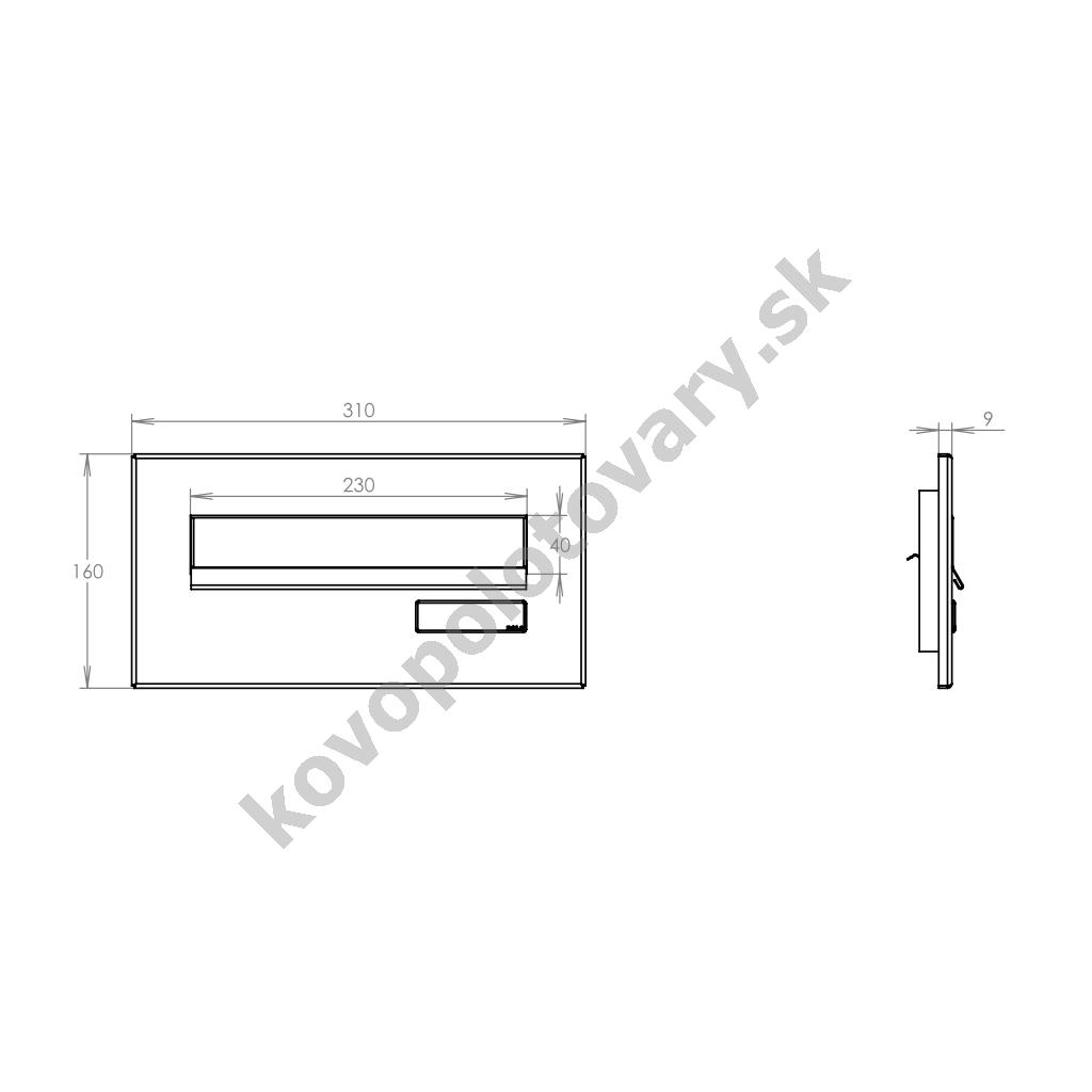 Jmenovka: Ano; Materiál: ocel; Povrchová úprava: barveno; Rozměr čelní desky: 310 x 160; Venkovní použití: Ano; Výrobce: DOLS; Zvonkové tlačítko: Ne; Barva: antracit; černá;