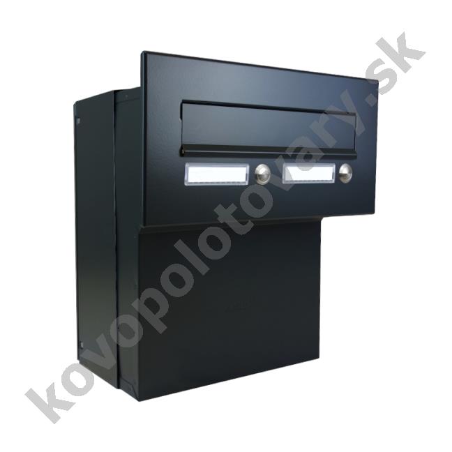 Hloubka schránky: 190 - 270; Jmenovka: Ano; Kamera: Ne; Komunikátor: Ne; Materiál: ocel; Montáž: zabudování; Povrchová úprava: barveno; pozinkováno; Rozměr čelní desky: 310 x 160; Šířka schránky: 260; Venkovní použití: Ano; Vhoz zásilek: vpředu; Výběr zásilek: vzadu; Výrobce: DOLS; Výška schránky: 330; Zvonkové tlačítko: Ano; Barva schránky: Antracit RAL 7016; Černá RAL 9005;
