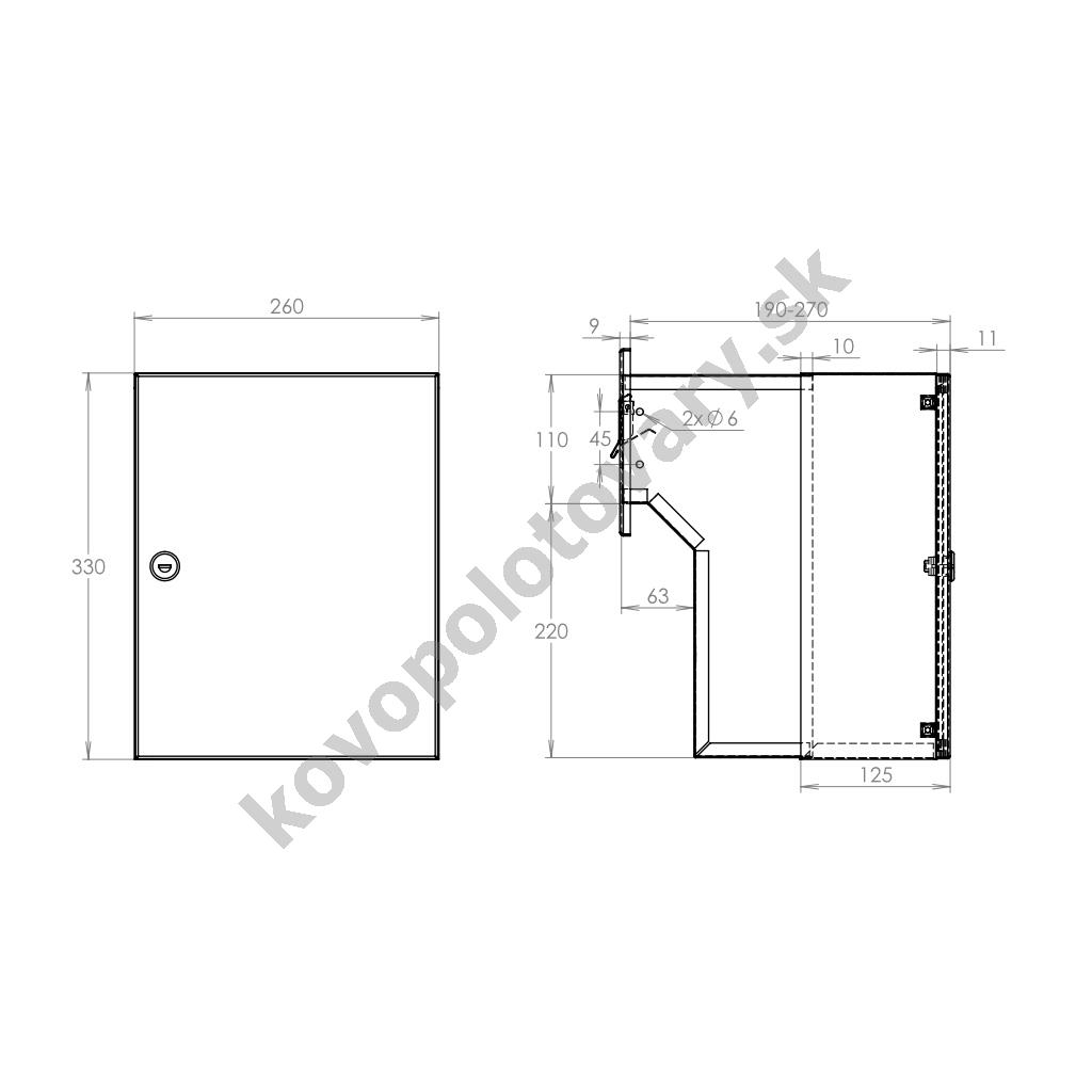 • telo schránky: 260 x 330 x 190 - 270 mm