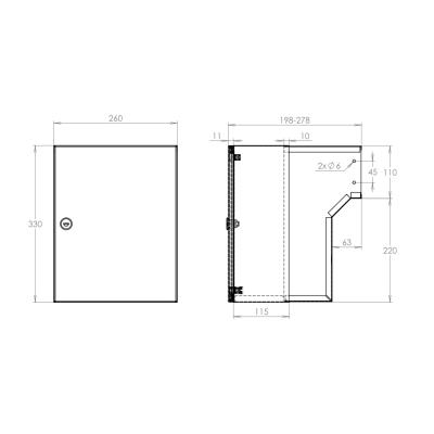 Barva: antracit; Hloubka schránky: 190 - 270; Materiál: ocel; Montáž: zabudování; Povrchová úprava: barveno; pozinkováno; Šířka schránky: 260; Venkovní použití: Ano; Vhoz zásilek: vpředu; Výběr zásilek: vzadu; Výrobce: DOLS; Výška schránky: 330;