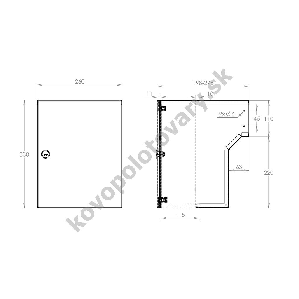 Barva schránky: Nerez; Hloubka schránky: 190 - 270; Jmenovka: Ne; Kamera: Ne; Komunikátor: Ne; Materiál: ocel; ocel nerezová; Montáž: zabudování; Povrchová úprava: barveno; mat / brus K240; pozinkováno; Rozměr čelní desky: 310 x 160; Šířka schránky: 260; Venkovní použití: Ano; Vhoz zásilek: vpředu; Výběr zásilek: vzadu; Výrobce: DOLS; Výška schránky: 330; Zvonkové tlačítko: Ne;