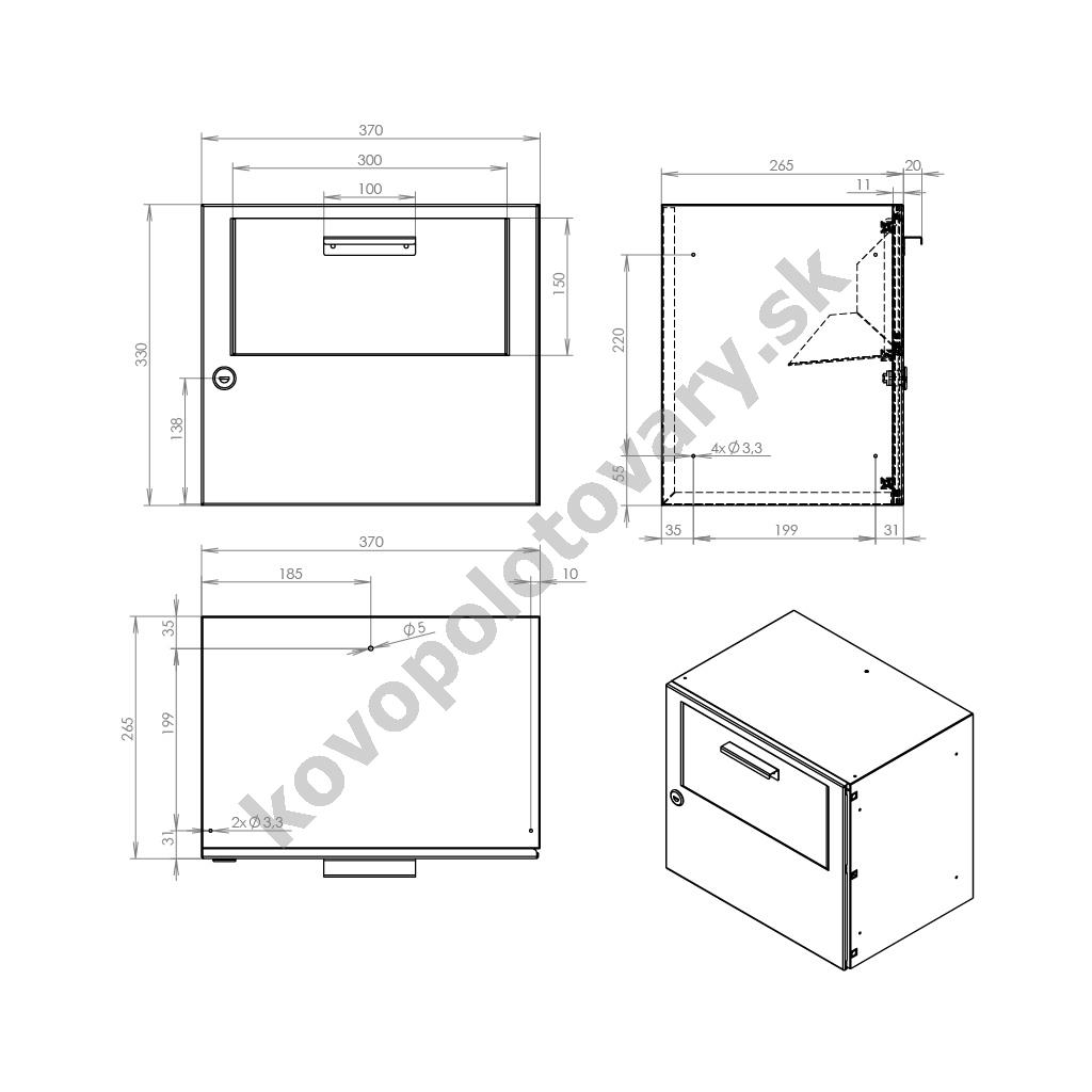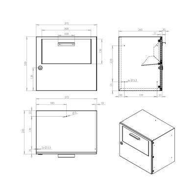 Lakovaná poštová schránka na balíky určená pre vytvorenie zostavy zoskrutkovaním s ďalšími týmito alebo inými vhodnými schránkami (viď záložka príslušenstvo). Pre zoskrutkovanie sú po všetkých stenách pripravené otvory, preto je vhodné vytvorenou zostavu zabudovať alebo opláštiť napr. sádrokartónom. V predných dvierkach je zabudovaný vyklápací mechanizmus, ktorý pri zaklopení presunie zásielku do uzamykateľného priestoru.