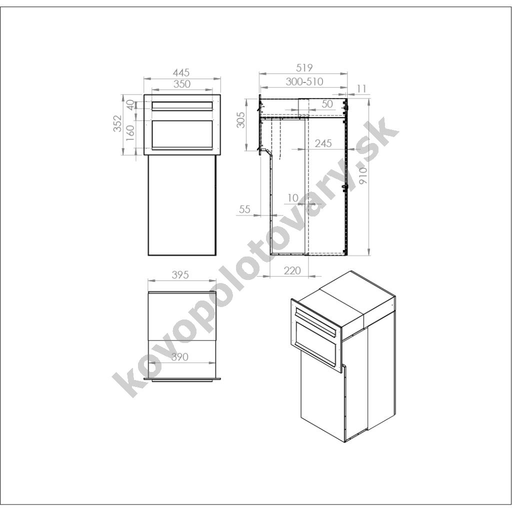 | Hĺbka schránky | 300 - 510 mm |