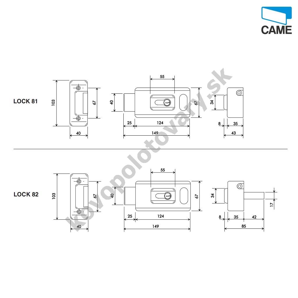 Elektrický zámek pro brány a vrata CAME LOCK-82 s oboustrannou vložkou, 12V