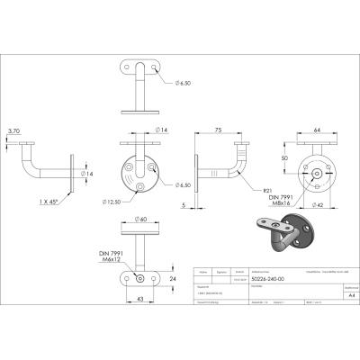 Pevný priamy nerezový držiak madla zábradlia. Určené pre vnútorné aj vonkajšie použitie v systémoch stavebnicového montovaného nerezového zábradlia a schodísk.
