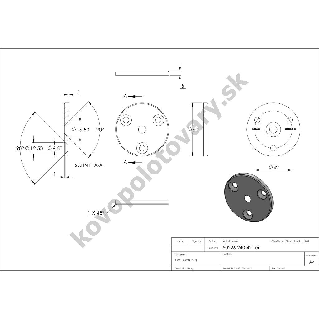Materiál: ocel nerezová; Povrchová úprava: mat / brus K240; Pro typ madla: s plochou podstavou; Třída oceli: AISI 304 (A2); Uchycení: na rovinu; Vlastnosti: pevné; přímé;