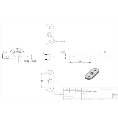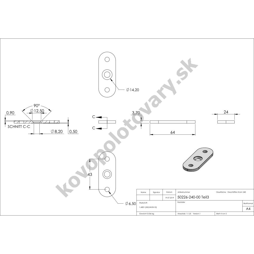 Feldmann 50226-240-00 - nerezový držiak madla s plochou podstavou, na stenu, pre nerezové zábradlie