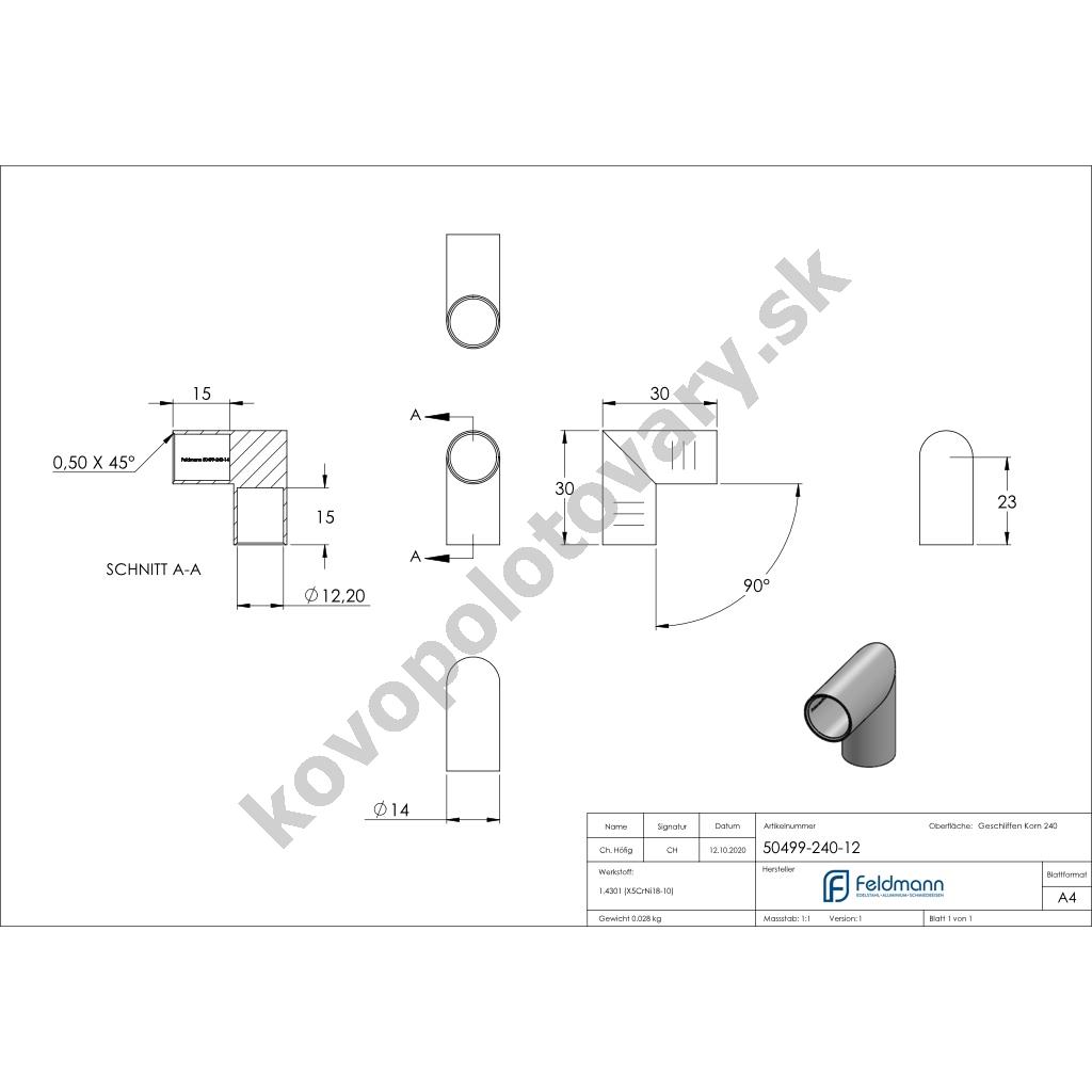 Materiál: ocel nerezová; Povrchová úprava: mat / brus K240; Pro průměr / průřez: 12; Třída oceli: AISI 304 (A2); Vlastnosti: pevné; rohové; spojovací;