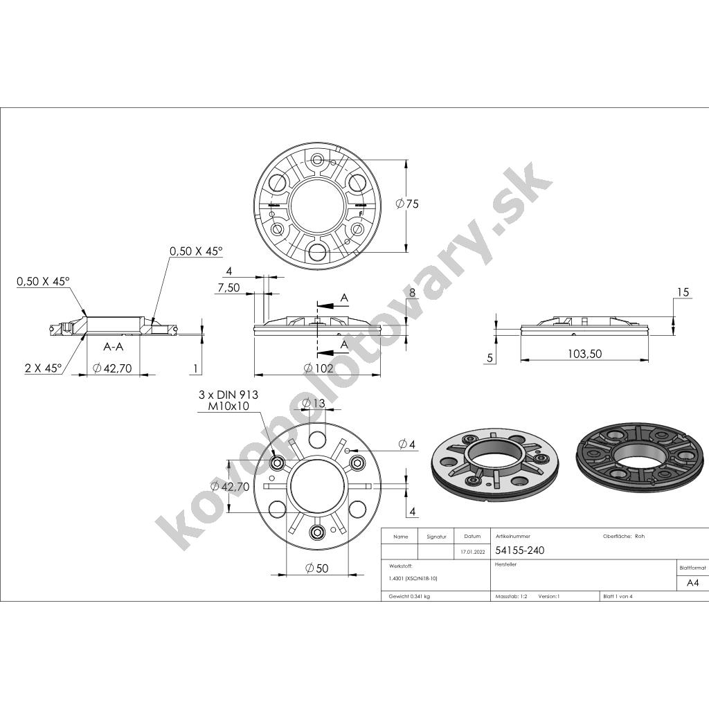 • 1x Feldmann 54155-240 - kotviaca príruba s tesnením