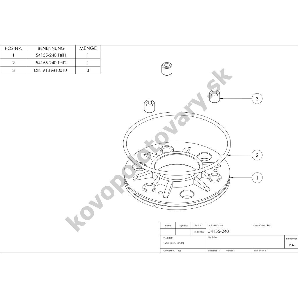 • Trieda ocele: AISI 304 (A2)