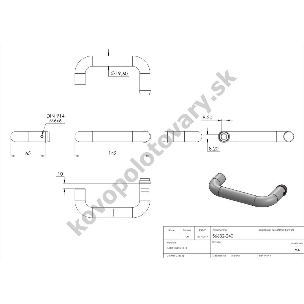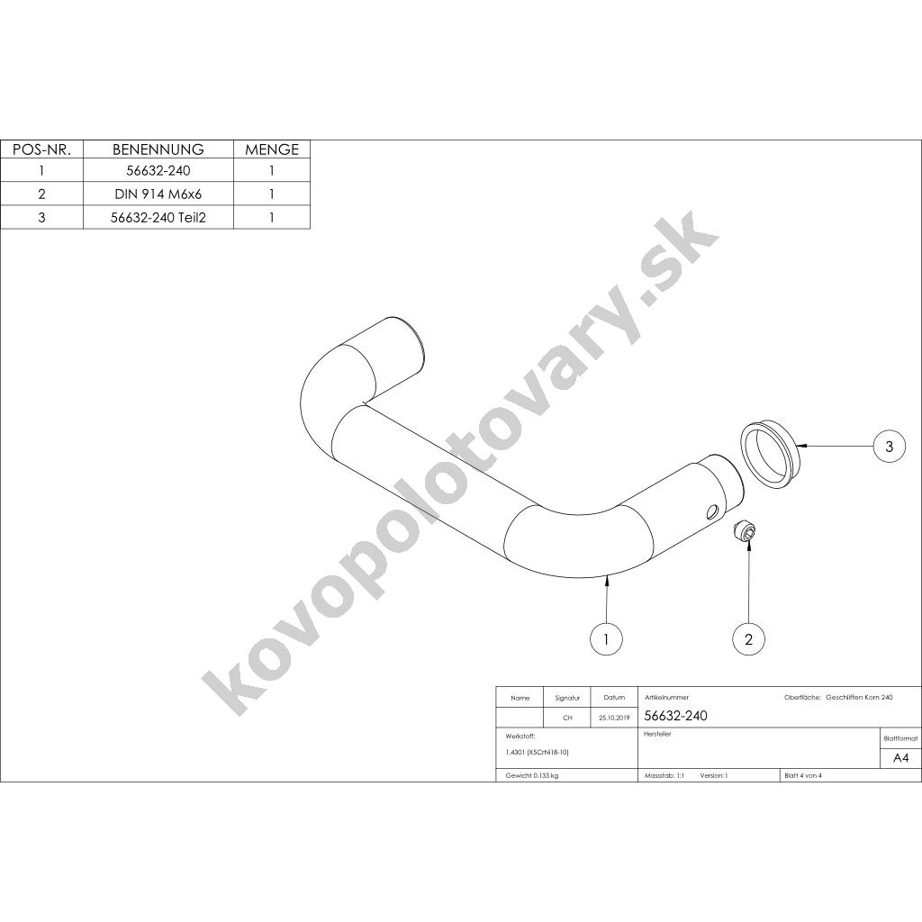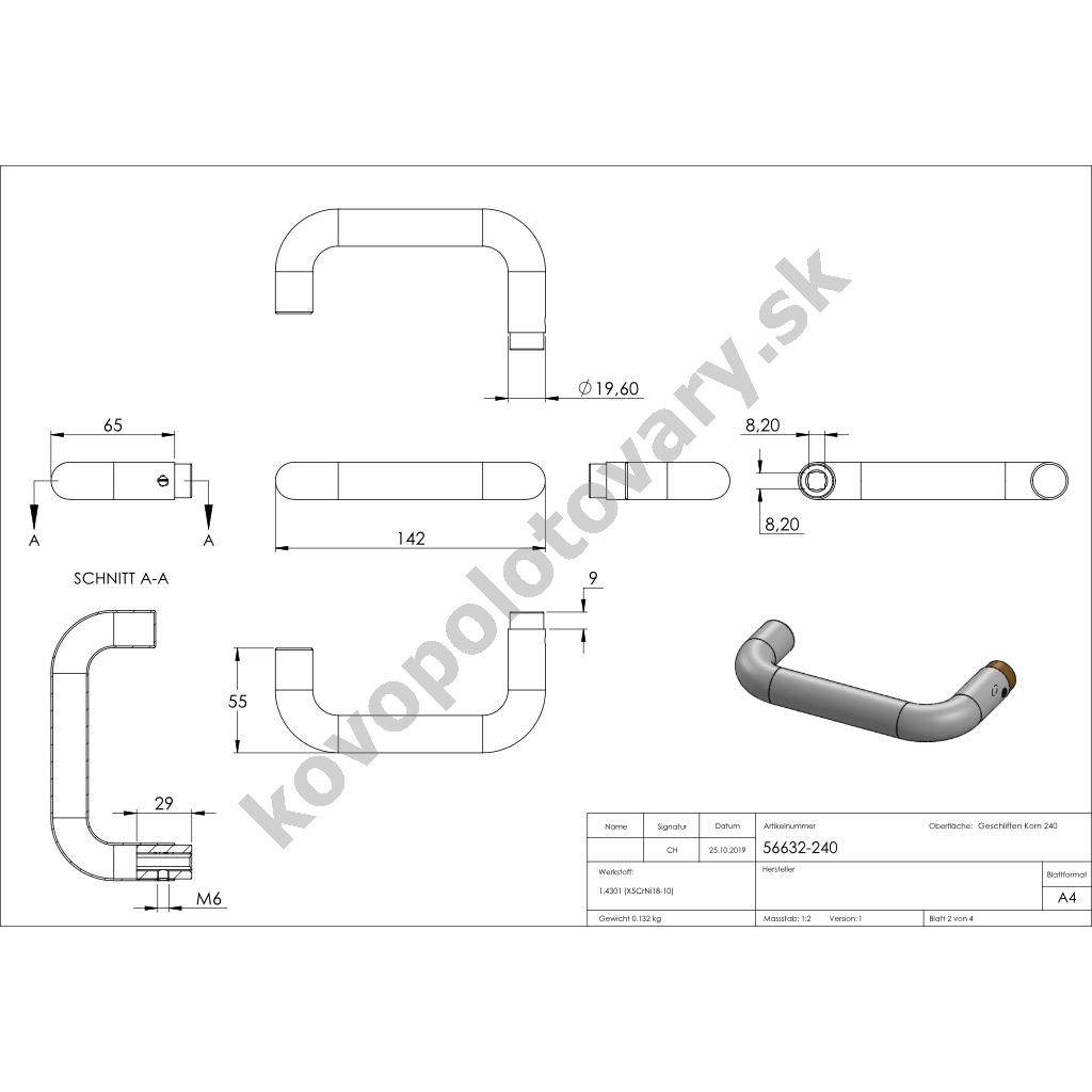 Materiál: ocel nerezová; Povrchová úprava: mat / brus K240; Třída oceli: AISI 304 (A2); Výrobce: Feldmann;