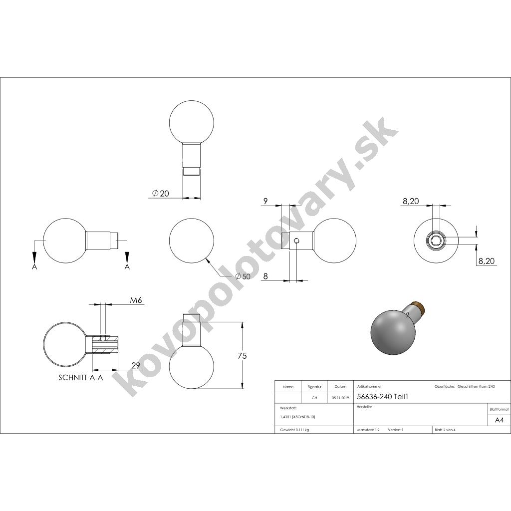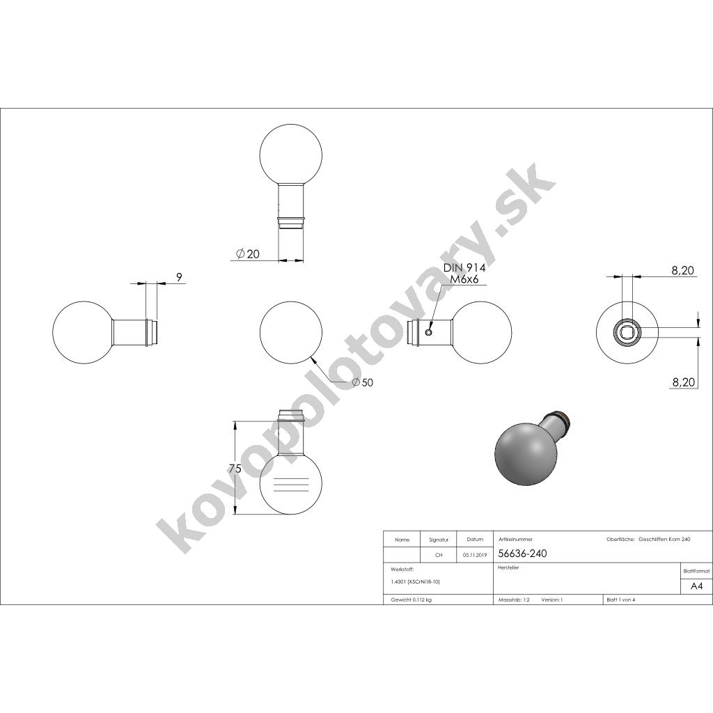 Materiál: ocel nerezová; Povrchová úprava: mat / brus K240; Třída oceli: AISI 304 (A2); Výrobce: Feldmann;