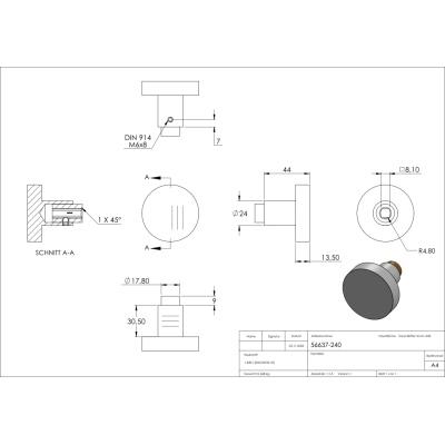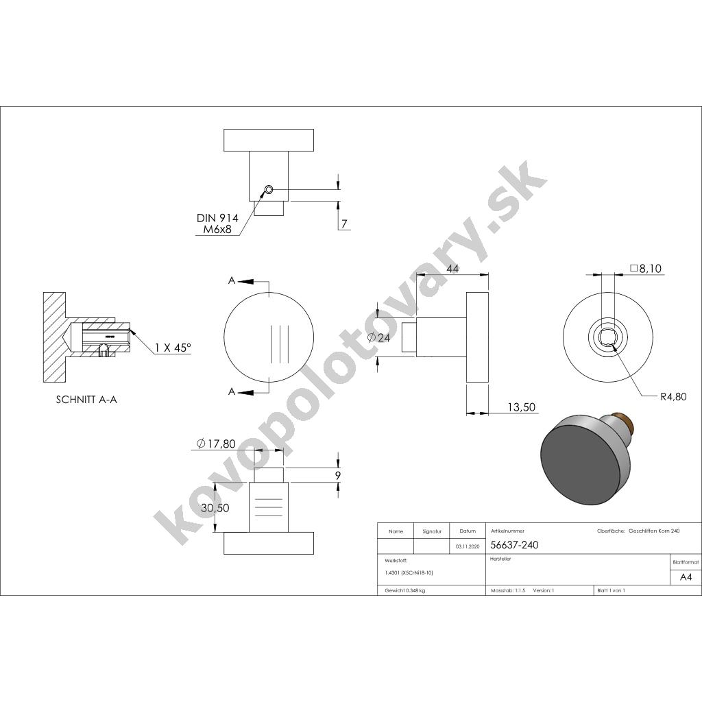 Materiál: ocel nerezová; Povrchová úprava: mat / brus K240; Třída oceli: AISI 304 (A2); Výrobce: Feldmann;