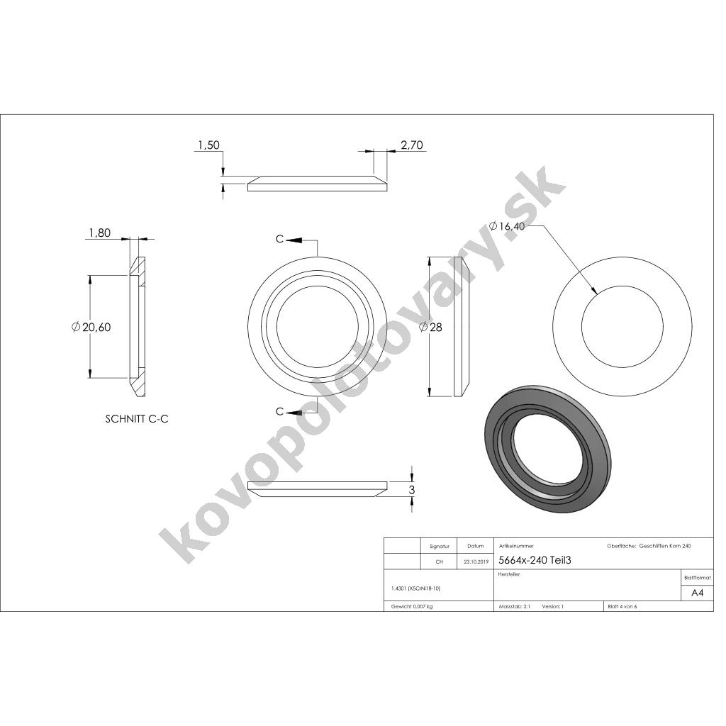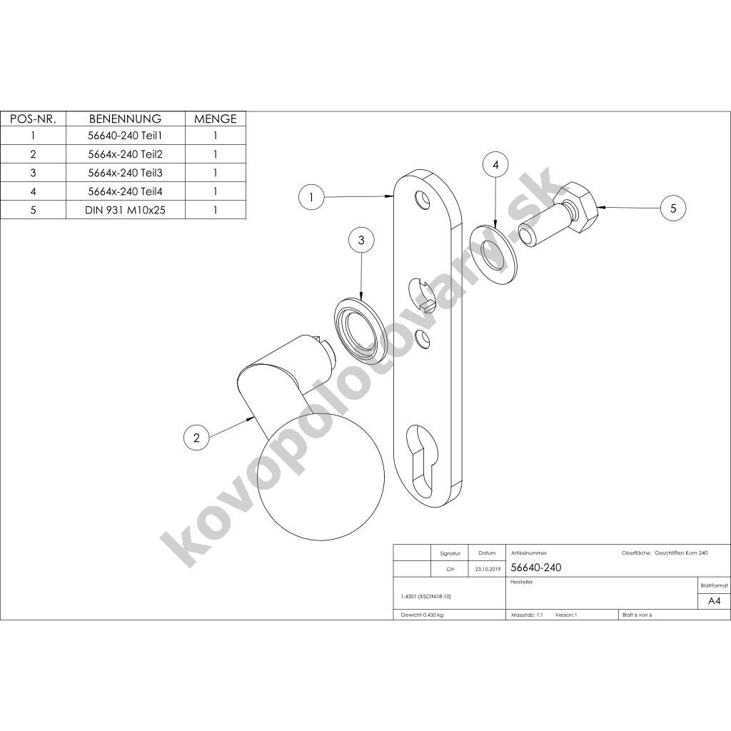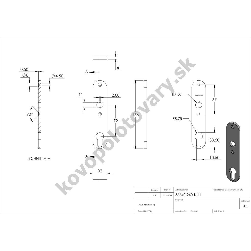 Materiál: ocel nerezová; Povrchová úprava: mat / brus K240; Třída oceli: AISI 304 (A2); Výrobce: Feldmann;
