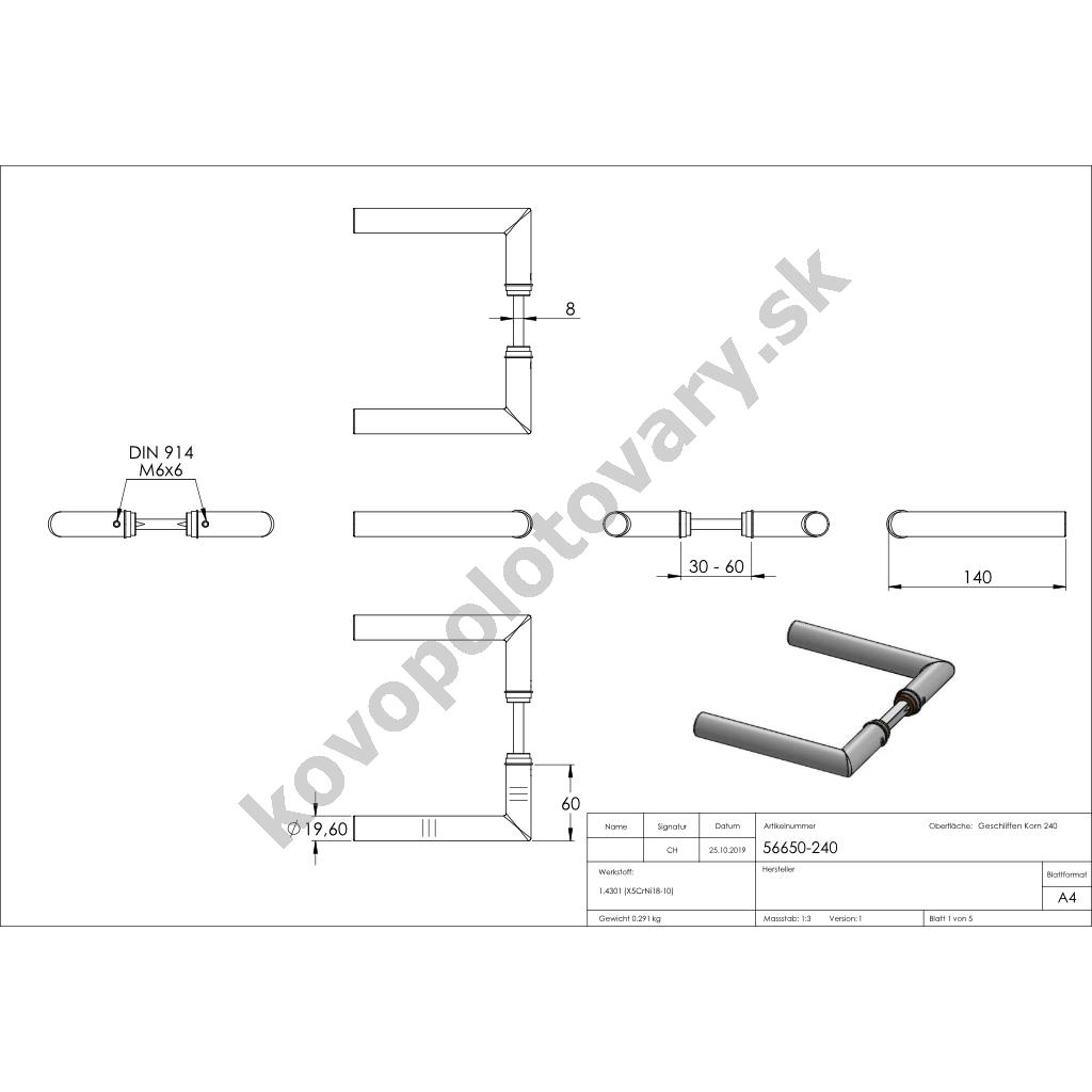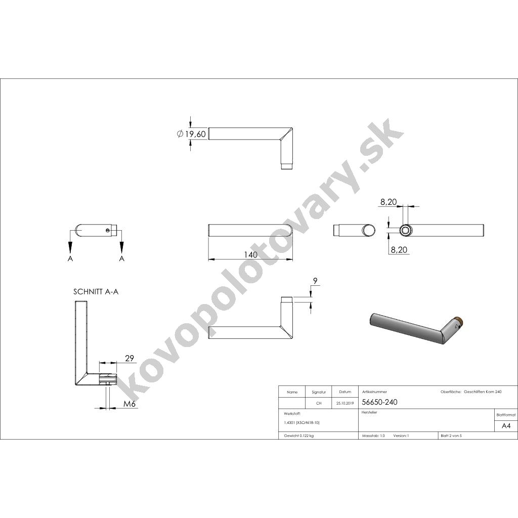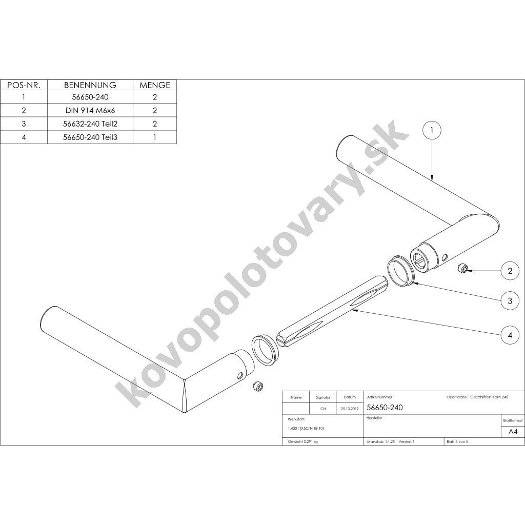 Materiál: ocel nerezová; Povrchová úprava: mat / brus K240; Třída oceli: AISI 304 (A2); Výrobce: Feldmann;