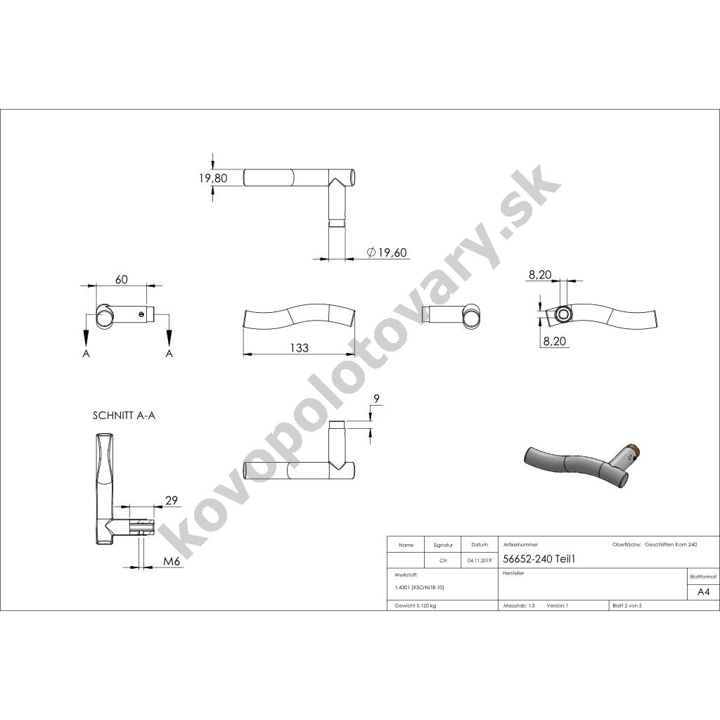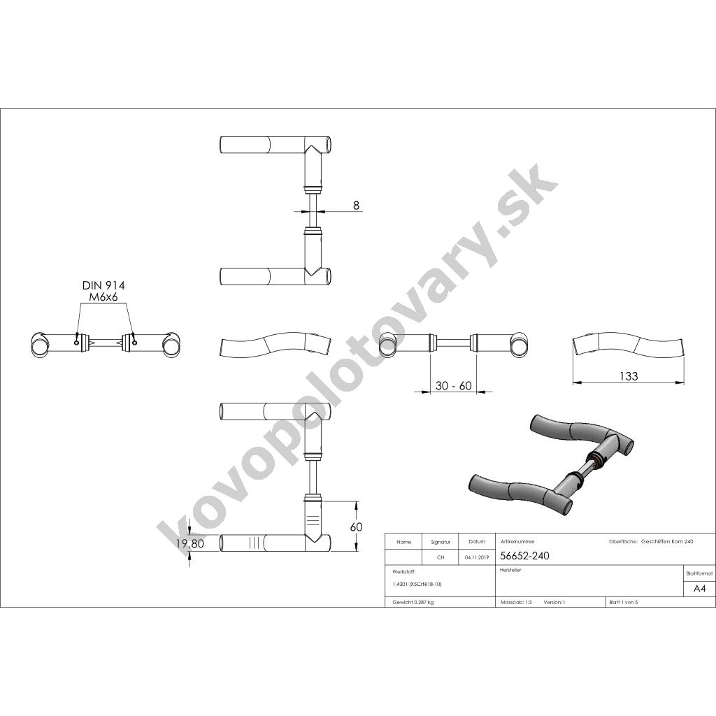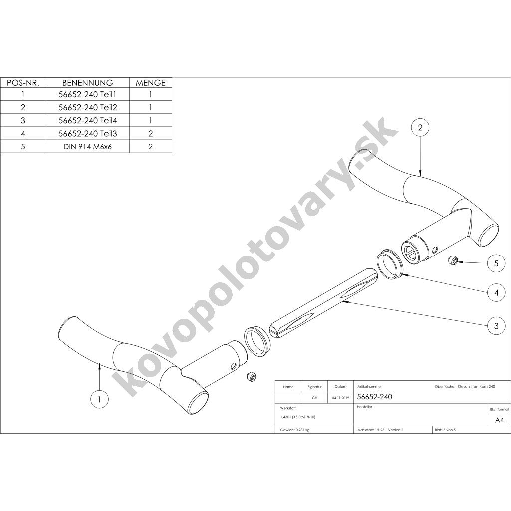 Materiál: ocel nerezová; Povrchová úprava: mat / brus K240; Třída oceli: AISI 304 (A2); Výrobce: Feldmann;