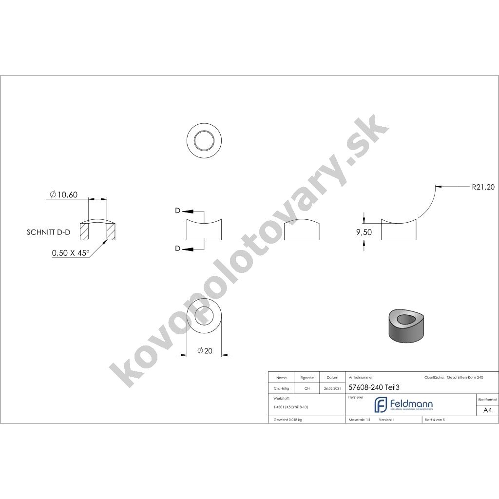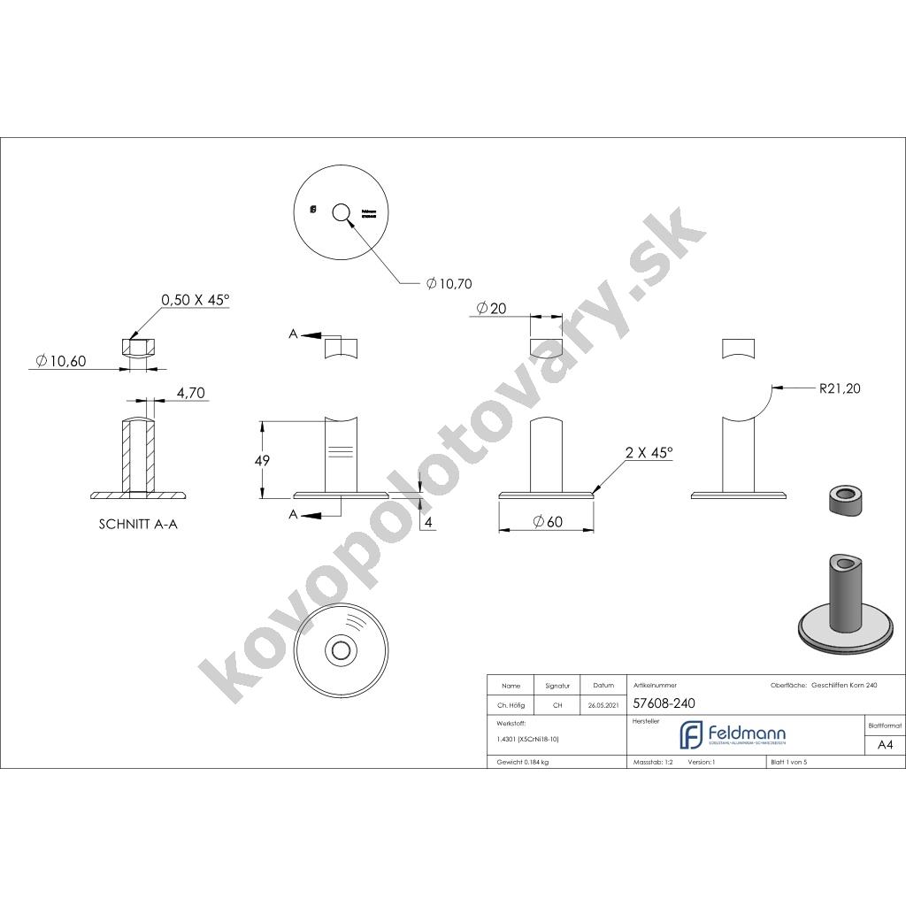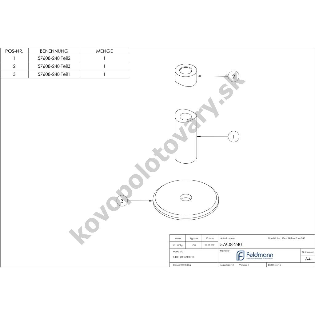 Materiál: ocel nerezová; Povrchová úprava: mat / brus K240; Pro průměr / průřez: 33,7; Třída oceli: AISI 304 (A2); Tvar profilu: O; Typ kotvení: boční (sloupek); Výrobce: Feldmann;
