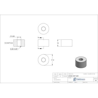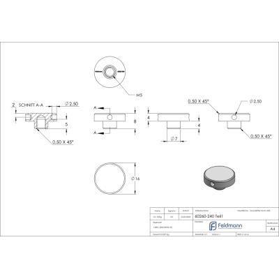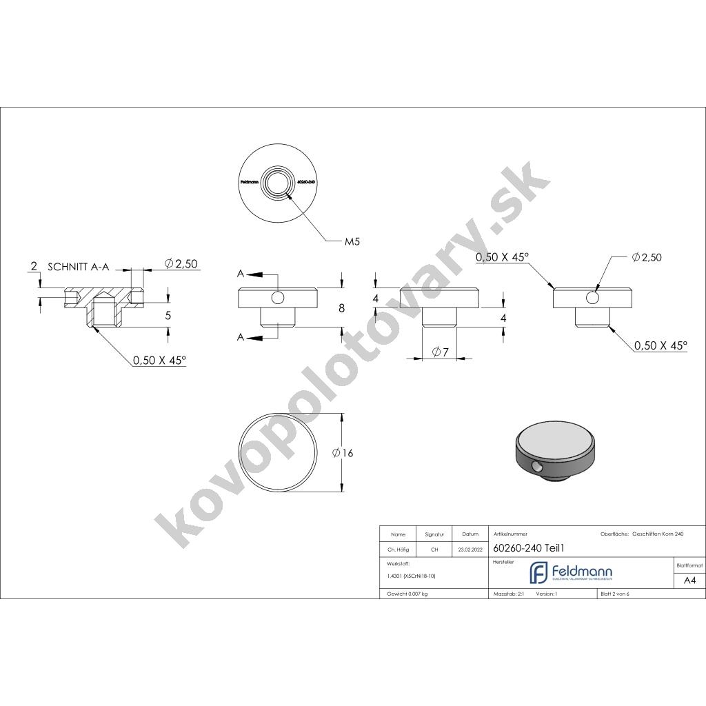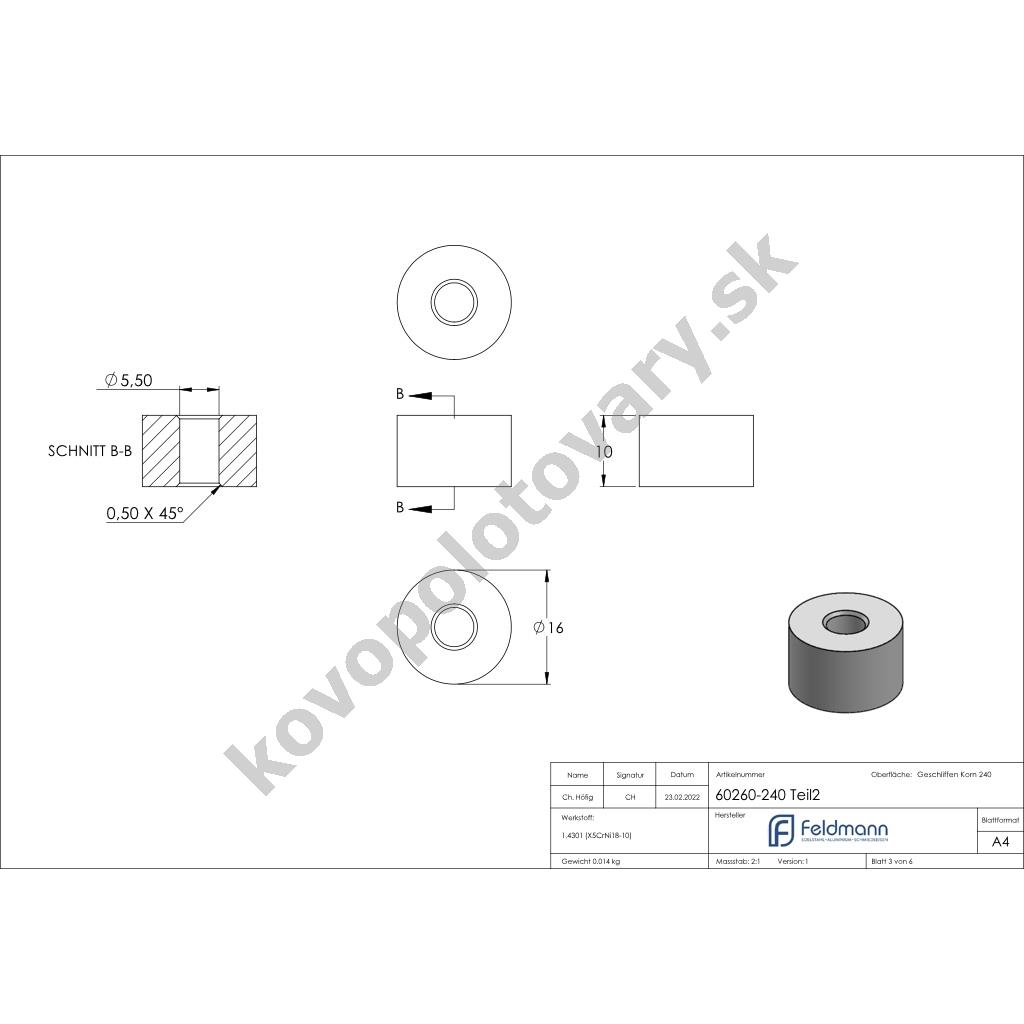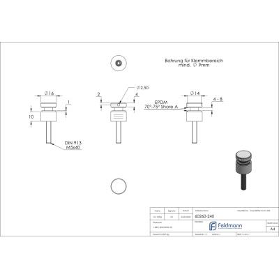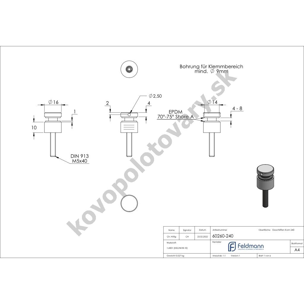 Feldmann 60260-240 - nerezový bodový držiak skla na rovinu, priemer. 16 mm