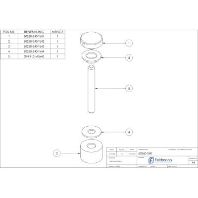 • 1x Feldmann 60260-240 - nerezový bodový držiak skla a plechu, vrátane tesnenia