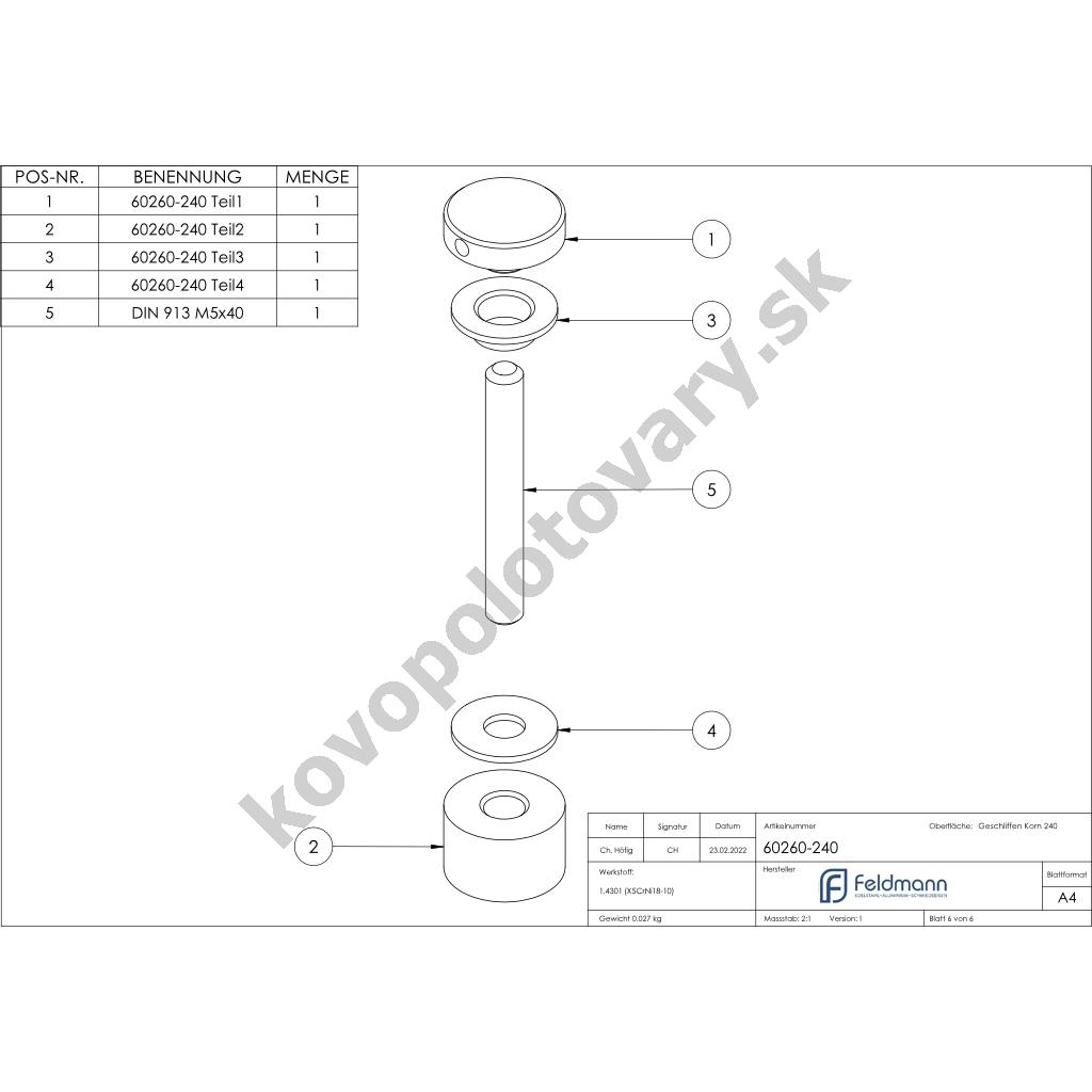 Feldmann 60260-240 Nerezový bodový držiak sklenenej alebo plechovej výplne pre montáž na rovnú plochu. Určený...