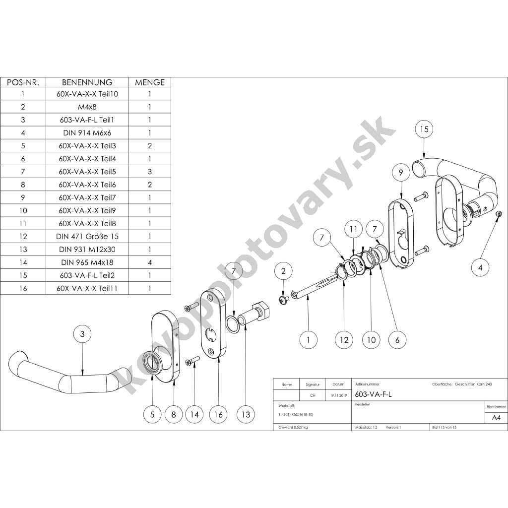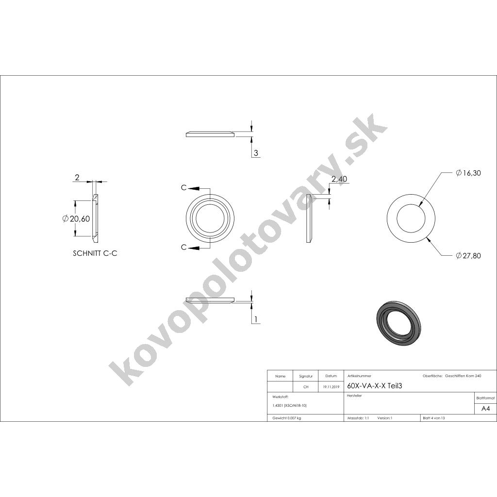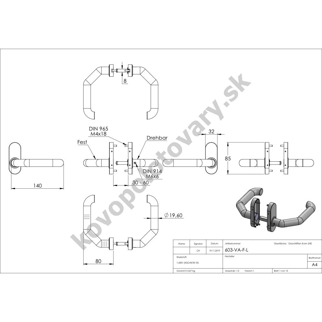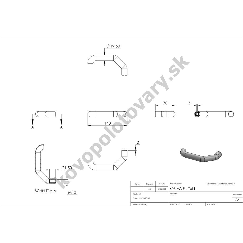 Materiál: ocel nerezová; Povrchová úprava: mat / brus K240; Třída oceli: AISI 304 (A2); Výrobce: Feldmann;