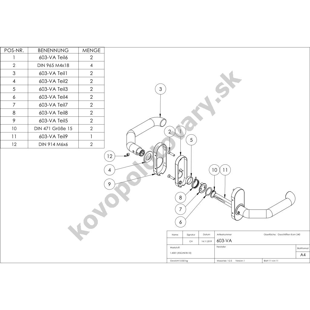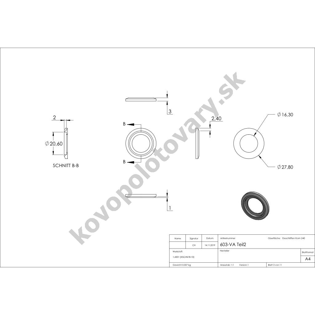| Povrchová úprava | mat / brus K240 |