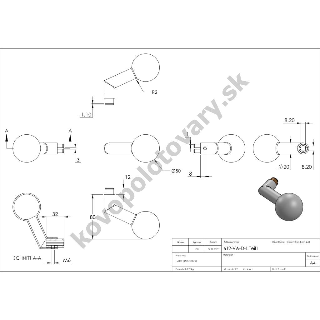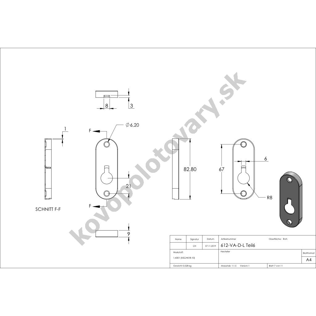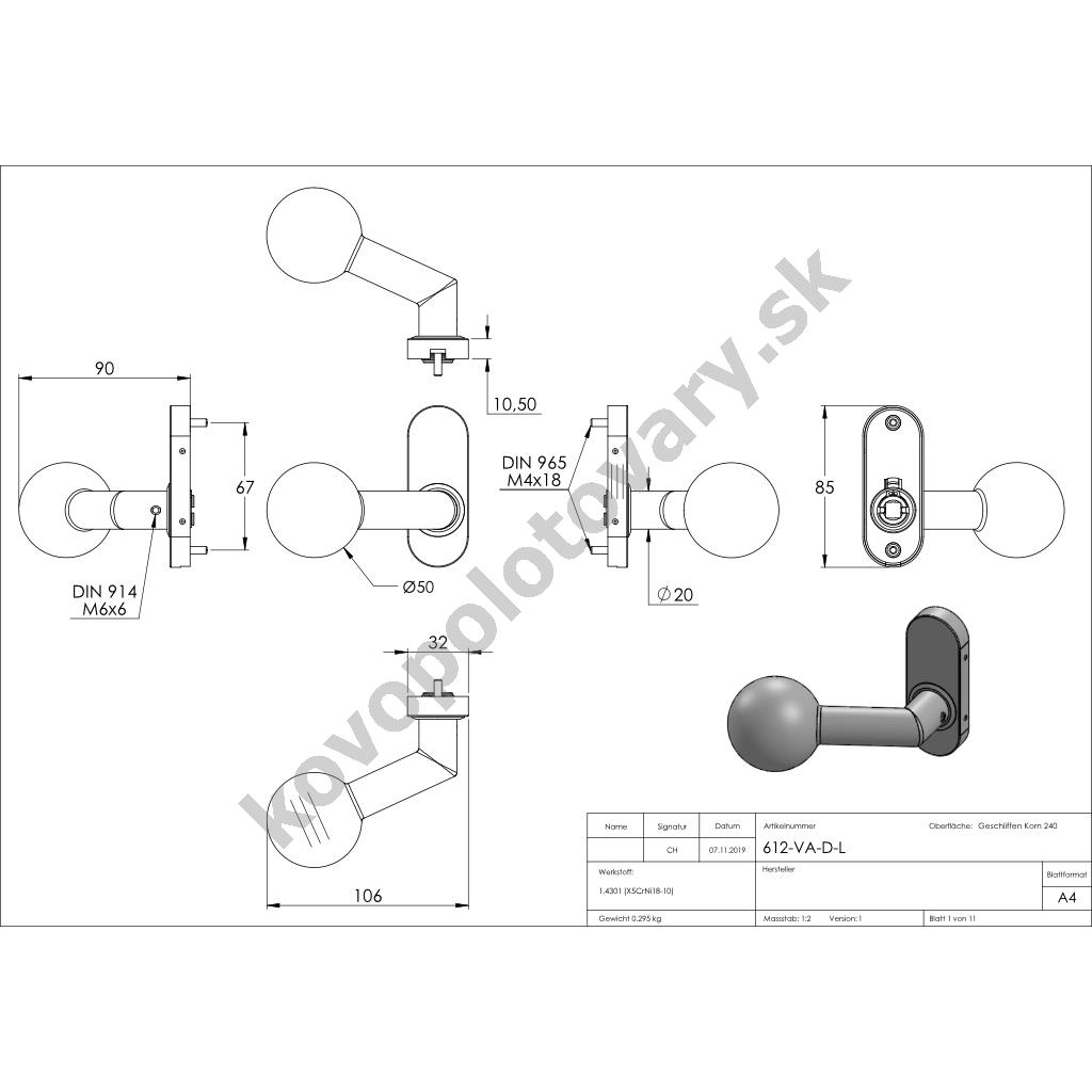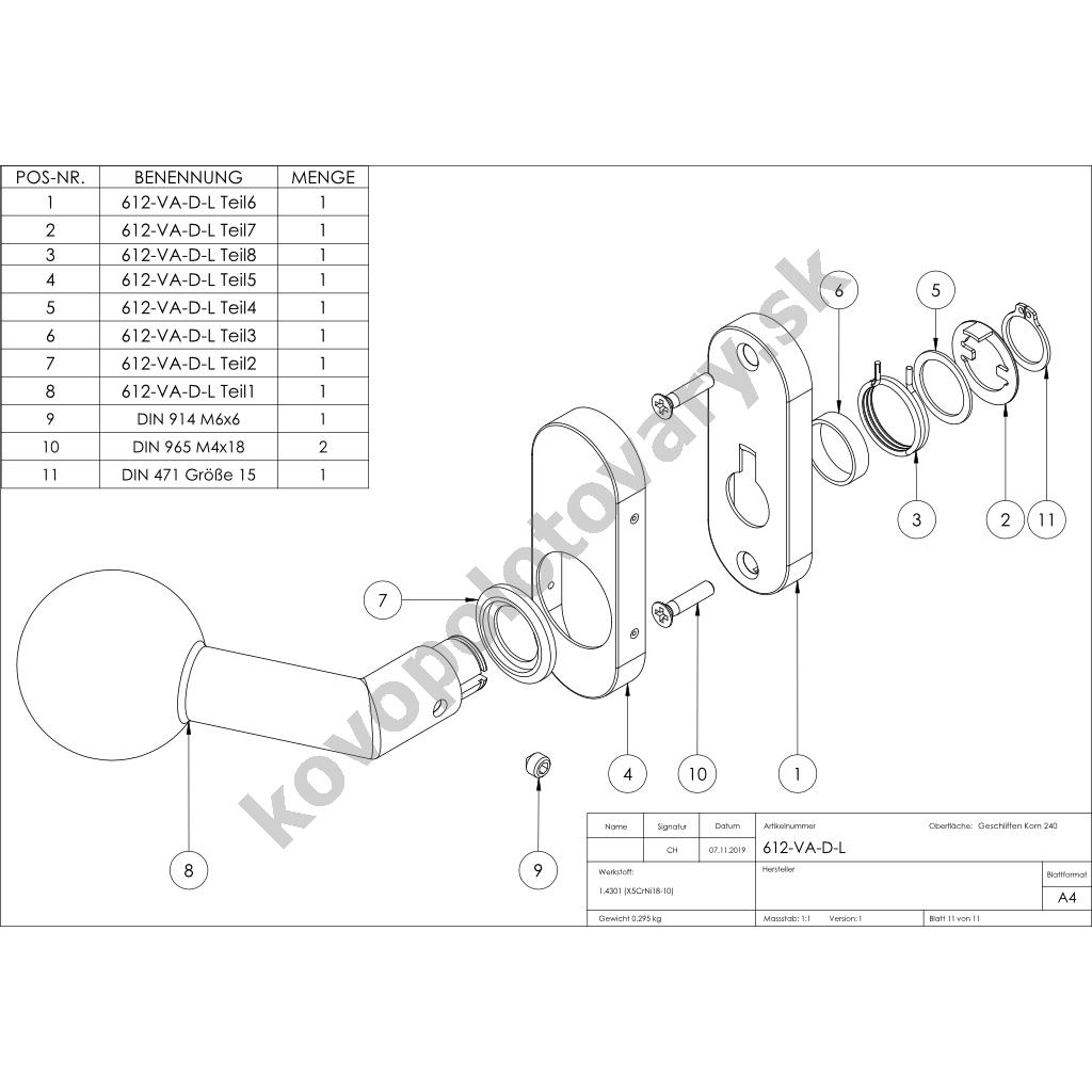 Materiál: ocel nerezová; Povrchová úprava: mat / brus K240; Třída oceli: AISI 304 (A2); Výrobce: Feldmann;