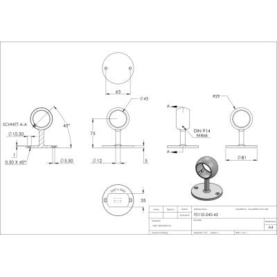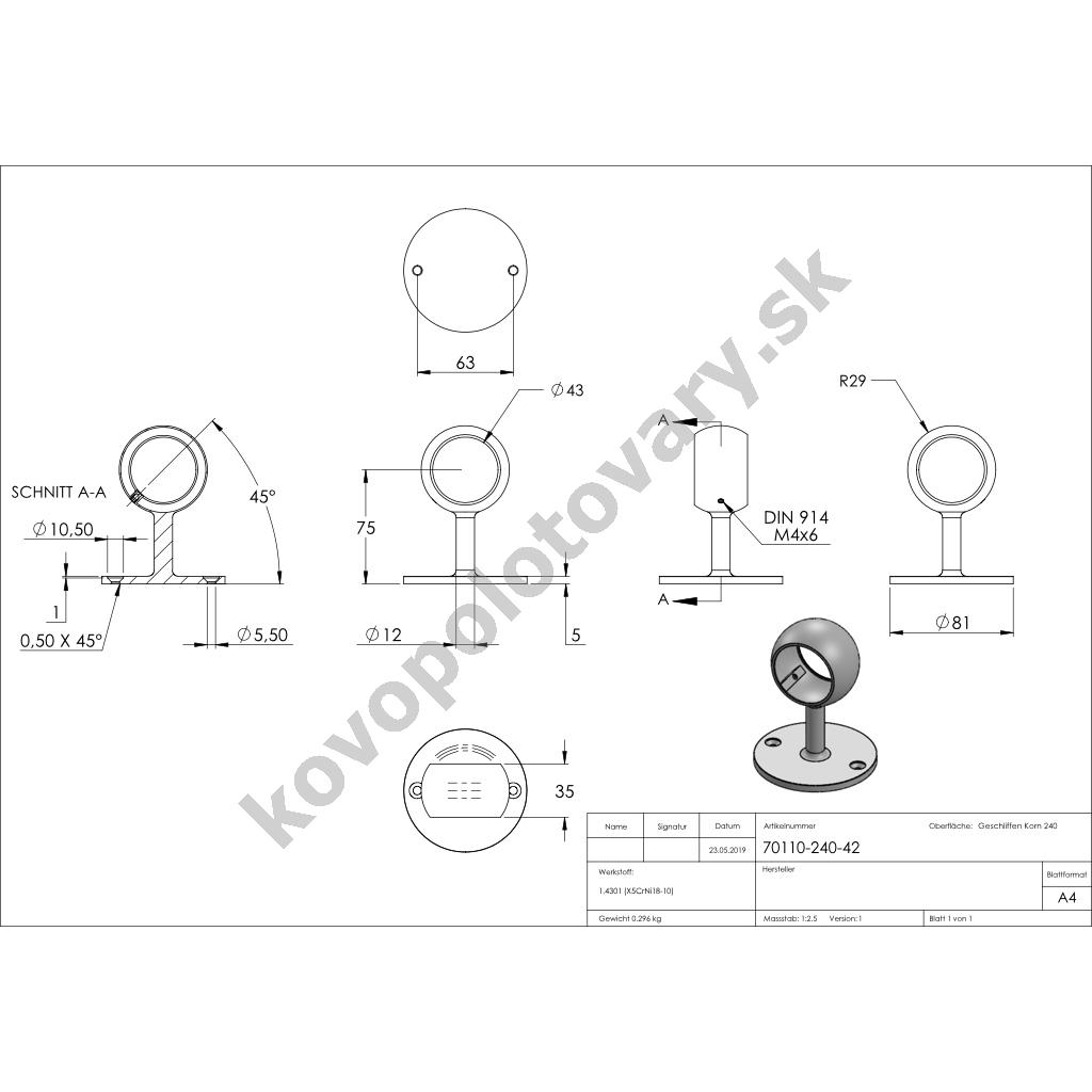 Feldmann 70110-240-42 - nerezový držiak madla pr. 42,4 mm, na rovinu, pre nerezové zábradlie