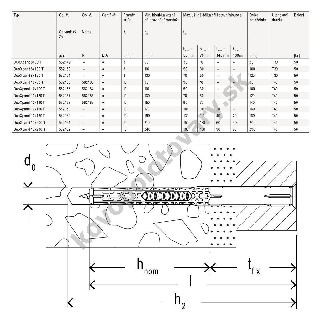 Délka: 80; Materiál: ocel nerezová; polyamid; polyoxymethylen; Min. hloubka vývrtu: 90; Průměr vrtáku: 10; Výrobce: Fischer;