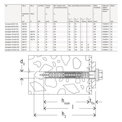 Délka: 230; Materiál: ocel; polyamid; polyoxymethylen; Min. hloubka vývrtu: 240; Průměr vrtáku: 10; Výrobce: Fischer;