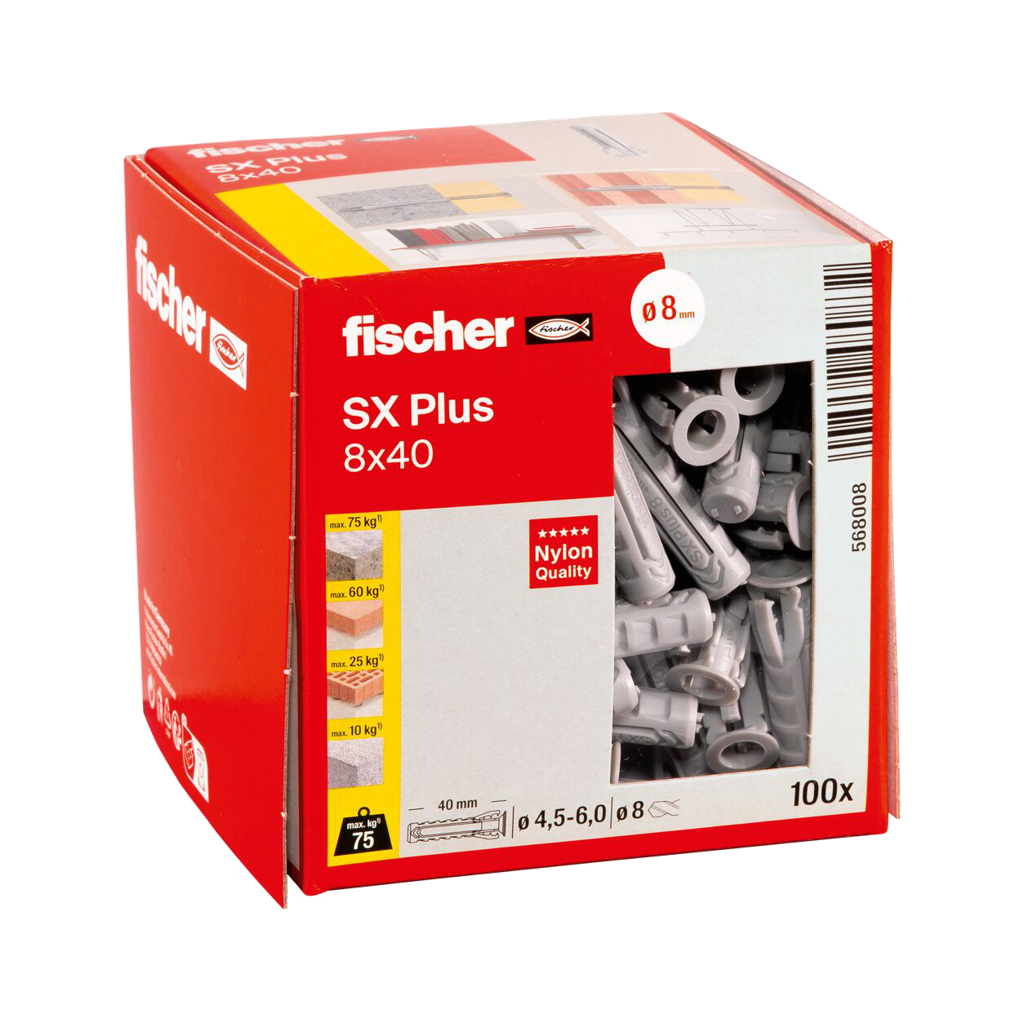 Délka: 40; Materiál: nylon; polypropylen; Min. hloubka vývrtu: 50; Pro průměr vrutu: 4,5; 5; 5,5; 6; Průměr vrtáku: 8; Výrobce: Fischer;