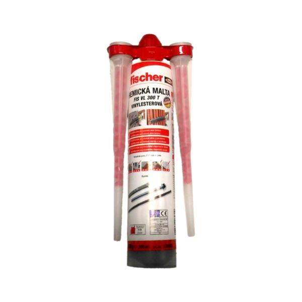 Fischer VL-300T HIGH SPEED Chemická vinylesterová kotva vhodná aj pre zimné použitie, v balenie s obsahom 300 ml. Dodávané vrátane 2 miešacích trysiek. Hmotu z náplne možno pohodlnejšie vytláčať pomocou aplikačnej pištole (nie je súčasť dodávky).