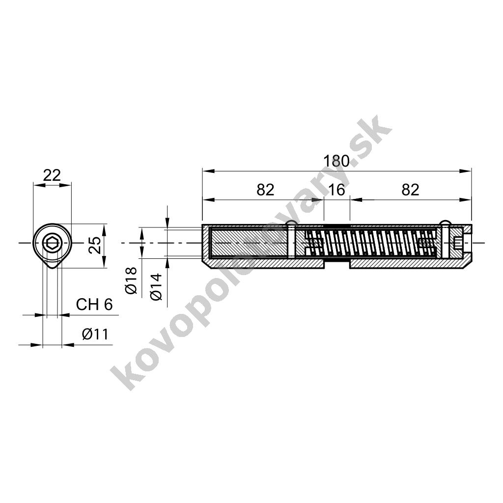IBFM 415M - navarovací pánt s pružinovým zatváračom, pr. 22 mm x 165 mm, pre dvere a vráta