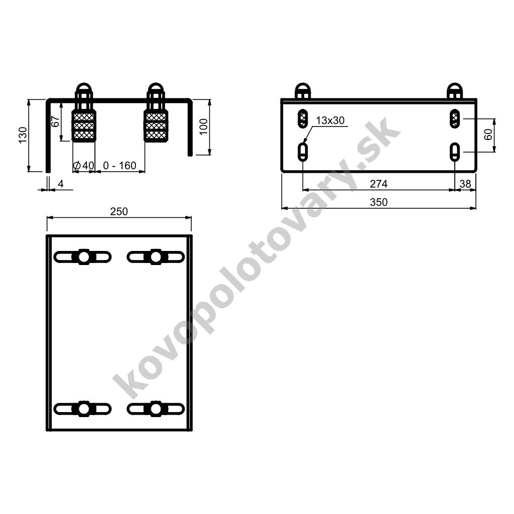 GRM-4 Horné vedenie brány s nastaviteľnou reguláciou a kotviacou platňou. Technické informácie: Roztec...