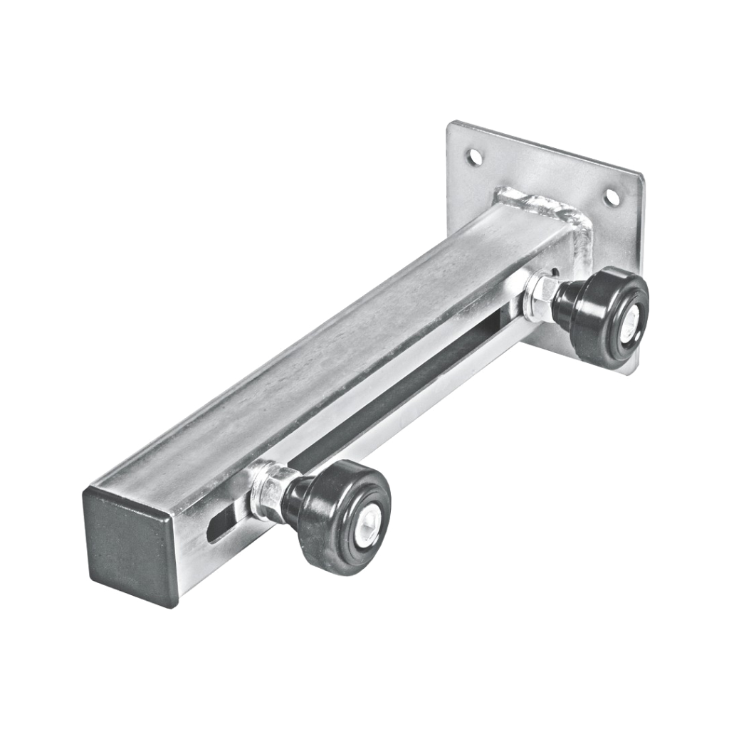 Zaisťuje stabilitu vrchnej časti rámu posuvnej brány proti preklopeniu do strany.