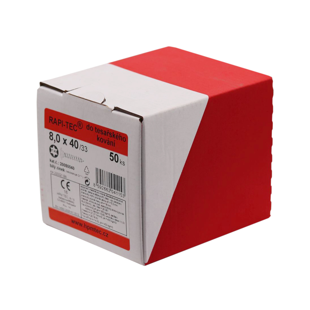 Drážka: T20; Materiál: ocel; Povrchová úprava: galvanické pozinkování; lak; Průměr hlavy: 8,3; Průměr závitu: 5; Typ hlavy: půlkulatá; Výrobce: HPM TEC; Délka: 40; 50;