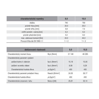 Délka: 260; Drážka: T40; Materiál: ocel; Povrchová úprava: galvanické pozinkování; lak; Průměr hlavy: 20; Průměr závitu: 8; Typ hlavy: talířová; Výrobce: HPM TEC;